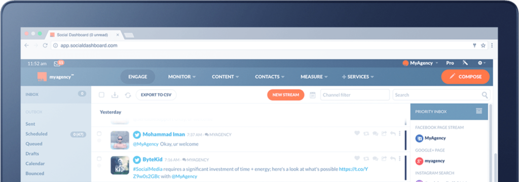 Our Priority Inbox keeps your team focused by bringing all the social messages from multiple profiles into a single filterable stream.